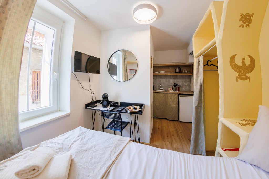 We offer a variety of accommodations to suit every traveler, from fully equipped apartments with washing machines, dishwashers, and private saunas, to cozy and stylish rooms complete with kitchenettes, air-conditioning, and private bathrooms. Whether you’re traveling as a couple, with family, or on your own, you’ll find a space tailored to your needs. Each room includes modern amenities such as free Wi-Fi, soundproofing, streaming services, and comfortable bedding, ensuring both relaxation and practicality throughout your stay.